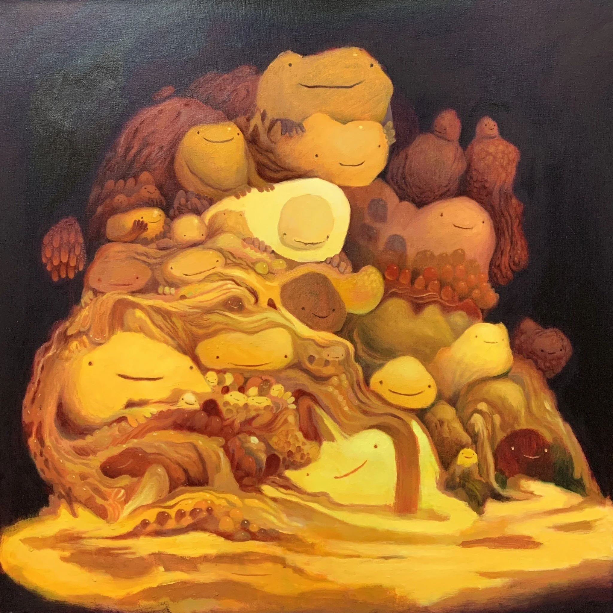 acrylic, watercolor, glitter on paper