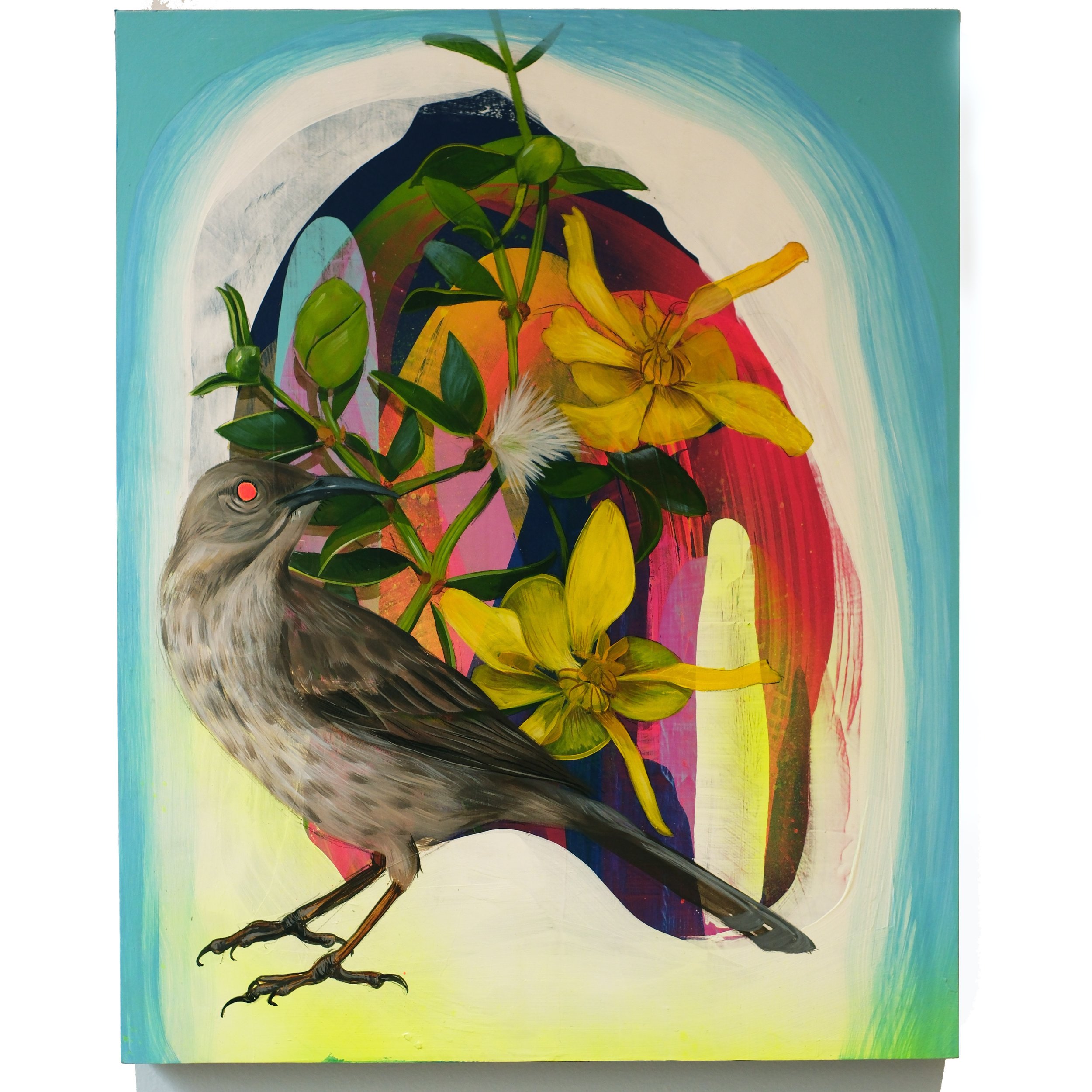In his own words: “As we try to understand the phenomena of nature by neatly labeling, dividing and categorizing, I approach my understanding by weaving elements of science and imagination. Exploring possibilities through the language of paint, I am able to blur the lines between reality and ideas. I like the spontaneity of starting with a background color or single image as a jump off point for the rest of the painting. One image will spark another and the process takes shape from there. I find this way of working to be both exciting and uncertain.”