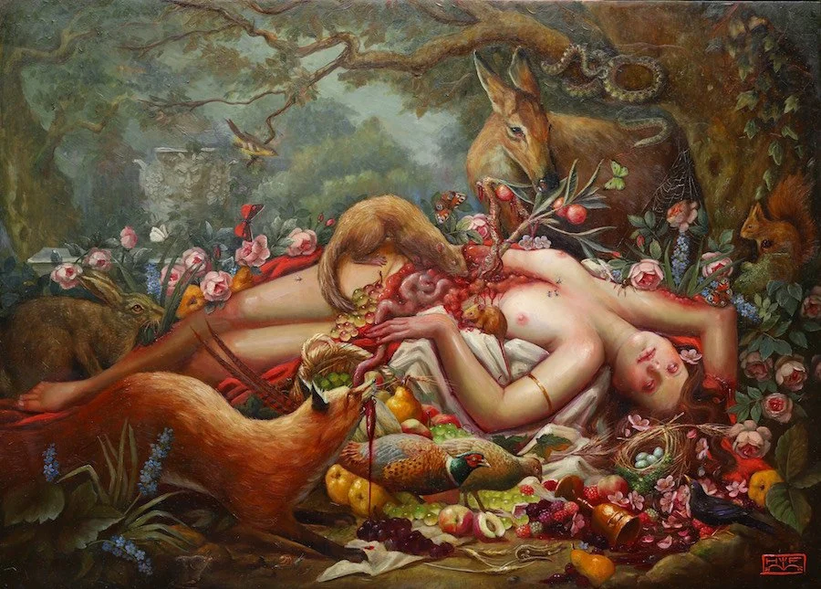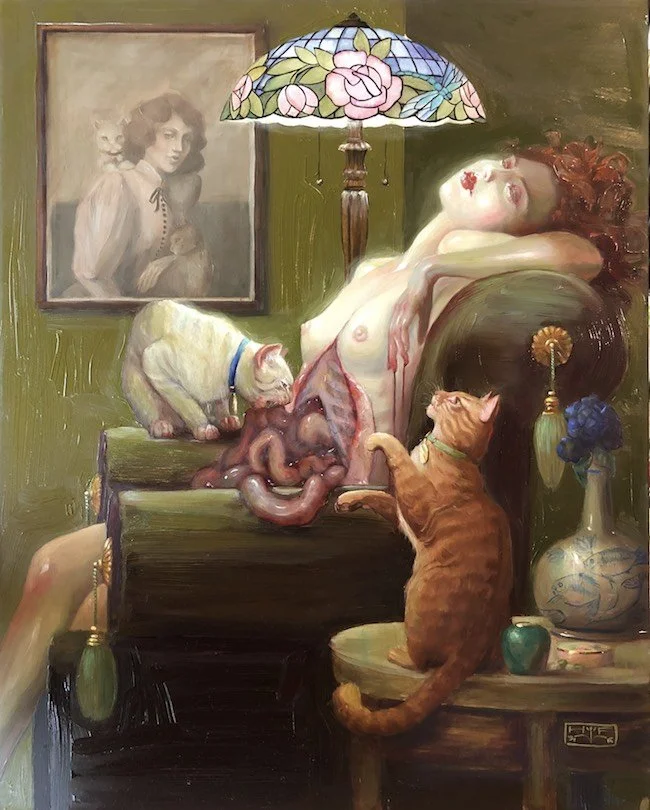 Hannah Flowers “Devouring of the Odalisque” oil on panel 28” x 20” SOLD