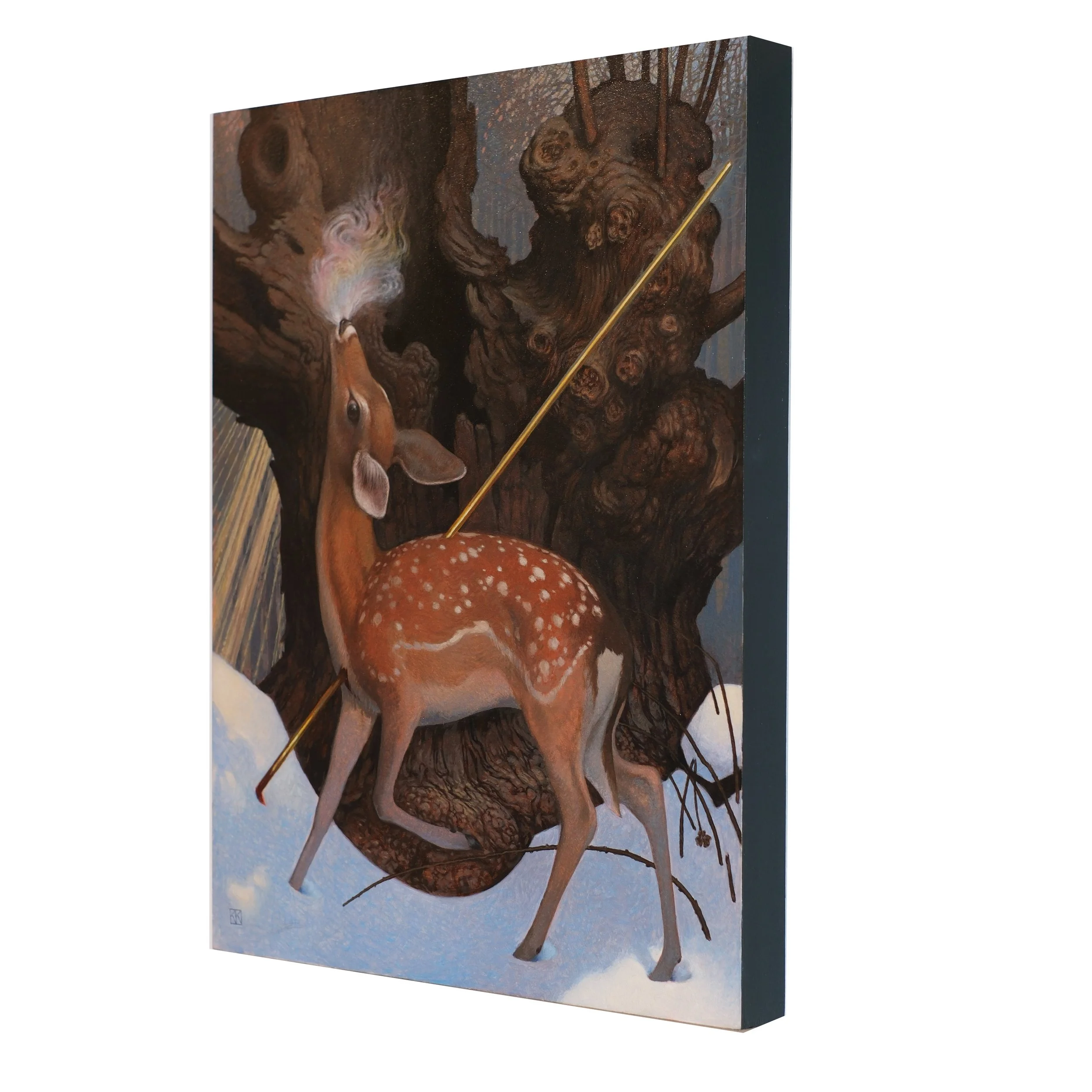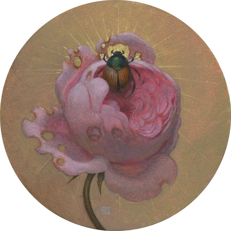 Inspired both by the natural world and by legends and myths, using elements of fantasy and allegory to explore themes of life, death, and rebirth. Kristin is a graduate of Union College in Lincoln, NE. She is the 2022 grand prize winner of the Beautiful Bizarre Art Prize. When not in the studio, she can usually be found riding her bike around town, or through the woods, where inspiration is most easy to come by. She currently lives in Lincoln, NE.