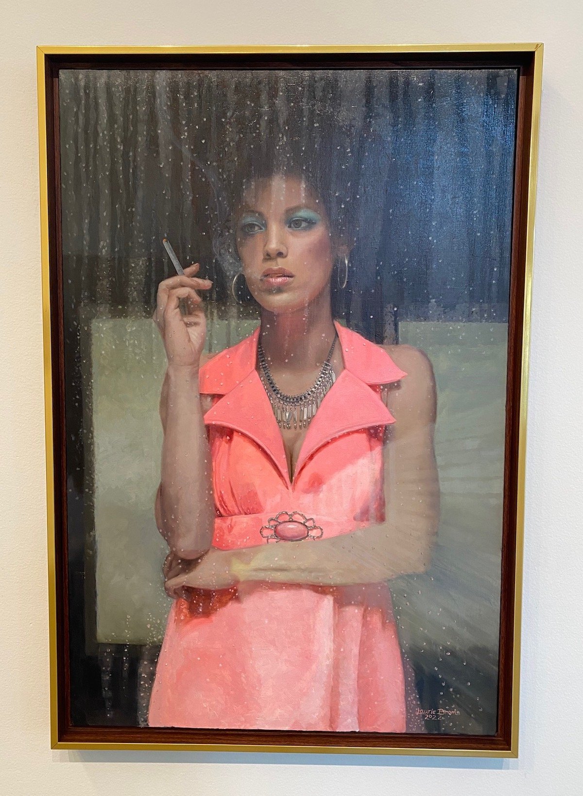 In this series of paintings, several of the women have far off gazes and enigmatic expressions. However, some exhibit a sly intelligence. Momentarily caged, perhaps there are quiet thoughts of rebellion brewing internally.