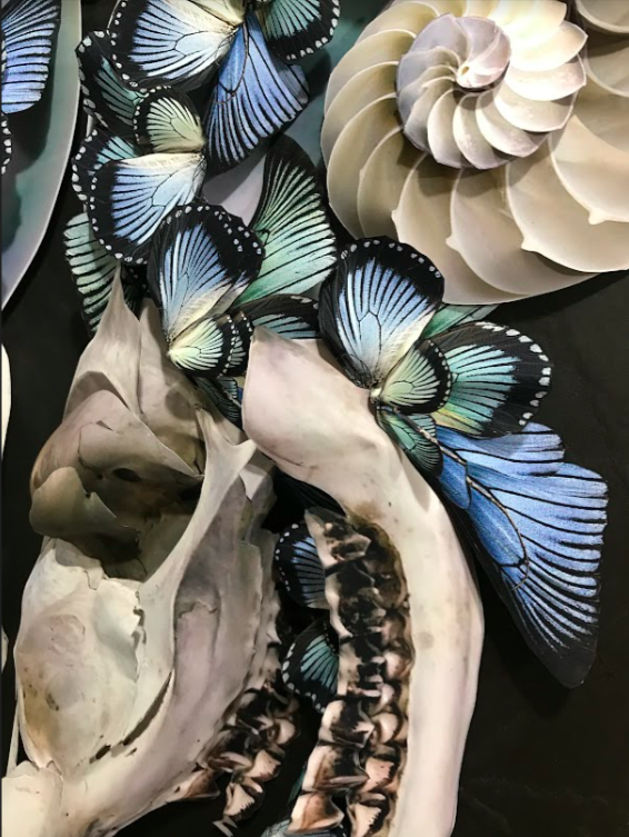 “Reflecting on the ecological niche of humans, I explore themes of regeneration, transformation, death, and rebirth, often using symbolic images of snakes, moths, birds, and bones. Throughout this body of work, you will see the ancient nautilus, with its spiraled shell, echoing the DNA in our cells and the very cosmos we exist. This living fossil reminds us that the human experience, like the sacred geometry of the shell, is a continuously growing spiral, allowing us to build on our past experiences to understand and meet the challenges of the present moment. With a process that combines mixed media, collage, and sculptural techniques, I manipulate paper into dimensional moments of suspended disbelief, inviting the viewer to reawaken to the enchantment of our timeless nature connection and the sacred balance to which we are inextricably bound.” - Sarah Best