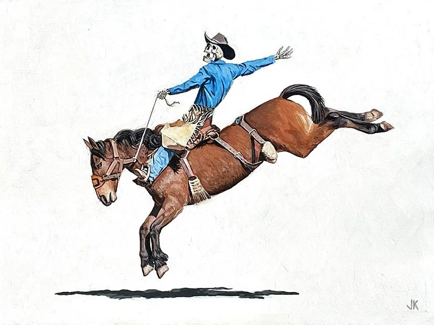 Josh Keyes “Jud” acrylic on birch panel. 6” x 8” SOLD