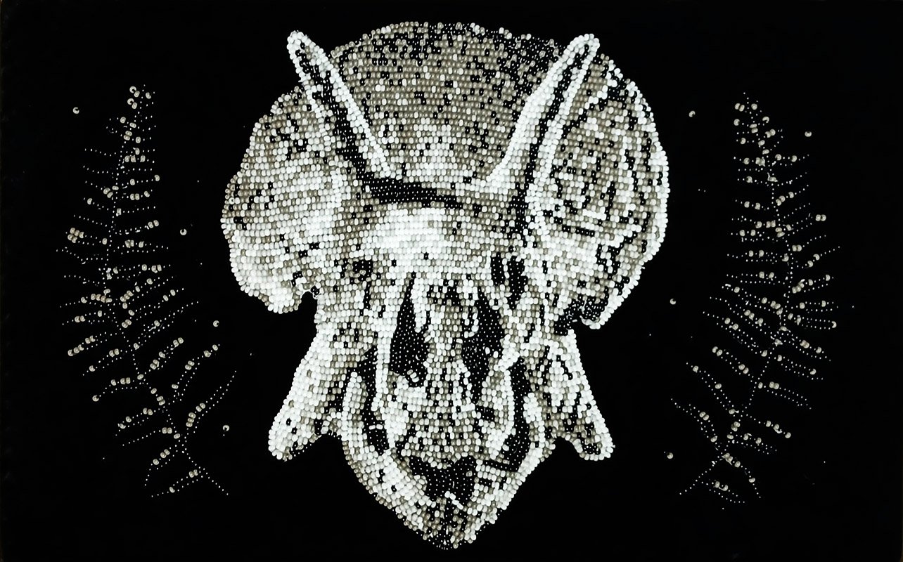 Glass beads, thread, velvet