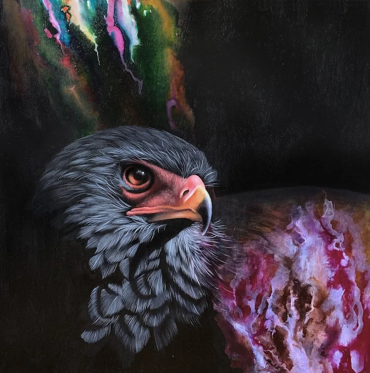 Josie Morway “Eagle Predicts Storm Systems” oil on cradled panel 12” x 12” SOLD